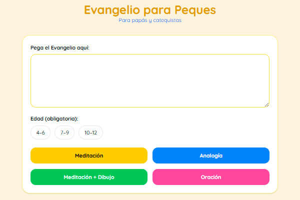 La herramienta adapta el mensaje del Evangelio según la edad del niño e incluye: